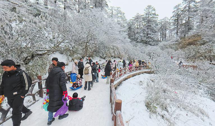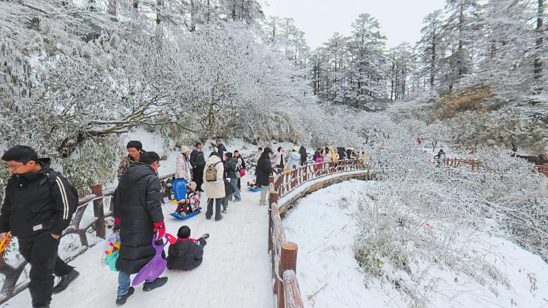 瓦屋山景区营销策划部负责人栗慧娟介绍,入冬以来,瓦屋山日均接待游客5000至7000人次,客源以云贵川渝为主,其中川渝游客占绝大多数,“作为西南地区冬季文旅热门打卡地,预计春节期间单日游客量将突破1万人次。”