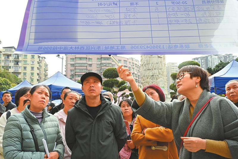 “如果我不加班,月薪能拿多少?”“宿舍最多住几个人,有没有空调和热水器?”……主会场活动现场,求职者们穿梭在各企业招聘展位前,仔细浏览招聘信息,与企业招聘人员深入交流,详细问询岗位需求、薪资待遇、工作环境和发展前景。