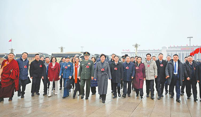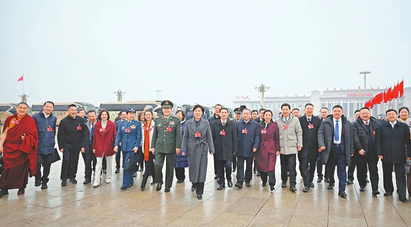 3月4日,全国政协十四届四次会议在北京开幕。图为四川省全国政协委员步入人民大会堂。记者 杨树 摄