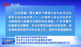 会议强调,要认真学习贯彻习近平总书记出席亚太经合组织第三十二次领导人非正式会议并对韩国进行国事访问期间和在海南、广东考察时的重要讲话精神,充分发挥西向南向开放优势,务实高效谋划明年对外交流工作,加快开放通道枢纽建设,搭建更多国际交流合作平台,推动入境游提质升级,更大力度稳外贸稳外资,帮助企业积极开拓市场,放大外贸、外资、外经、外事、外宣联动效应,更好服务国家总体外交大局。要学习借鉴海南自贸港建设经验做法,研究制定我省自贸试验区实施提升战略方案,推广一批制度型开放措施,推动自贸试验区建设提质增效。要加强与粤港澳大湾区交流合作,协同重庆谋划实施一批重大项目重点任务,联动提升成渝地区双城经济圈发展能级。要对照中央和省委部署研究细化贯彻落实举措,高质量做好我省“十五五”规划编制工作。要抓实抓细产业发展、项目投资、消费提振、外资外贸和民生保障等重点工作,守牢安全底线,坚决完成全年目标任务,确保“十四五”顺利收官,为“十五五”开好局打牢基础。