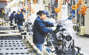 绵阳新华公司今年加大技改投入力度,发动机和整车产值一季度同比增长20.9%。图为该公司的汽油发动机生产流水线。