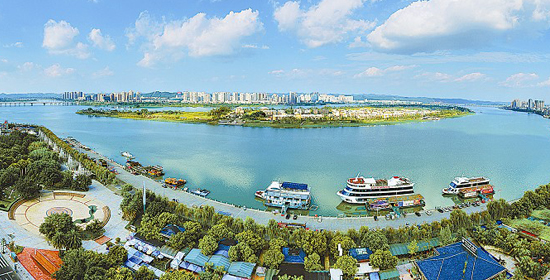 遂宁围绕生态山水城、现代花园城、观音文化城“三城”建设,不断提升宜居的城市环境。行走在遂宁城区,青山绿水环绕,涪江穿城而过,由此形成14.8平方公里、远期将达30平方公里的城市湖泊观音湖,成为遂宁独有的城市景观。沿湖滨而建的湿地公园,呈现出“水在脚边流、花在身边开、鸟在树上叫、人在画中游”的生态亲水美景。