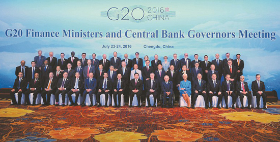 7月24日,G20财长和央行行长会议与会代表在成都会场留下全家福合影。记者 肖雨杨 摄