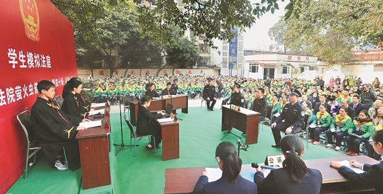 2月15日,泸州七中的“模拟法庭”正式开庭,“合议庭成员”“原被告”以及“代理律师”“书记员”等所有成员由该校学生担任,让师生们在体验和观摩中增强法治理念。刘学懿摄(视觉四川)