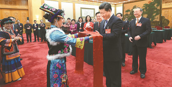 习近平同代表亲切交流。新华社记者 兰红光 摄