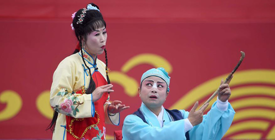 6月10日,演员在成都国际非遗博览园举行的第六届中国成都国际非物质文化遗产节上表演江西采茶戏。