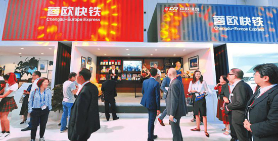 西博会进出口展暨国际投资大会的展场中,成都馆的蓉欧快铁展台吸引了参会嘉宾的目光。记者 何海洋 摄