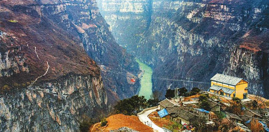 9月26日,汉源县古路村农村电网改造升级项目完工通电。村党支部书记骆云莲说:“现在村里路也通畅了,电力也有保障了,相信我们村的旅游一定会越来越好。”图为古路村新修的索道。 (记者 郝飞 摄)