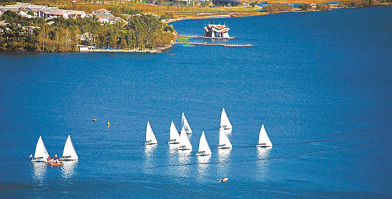 孕育了奥运帆板冠军殷剑的邛海海面时常有帆影点点