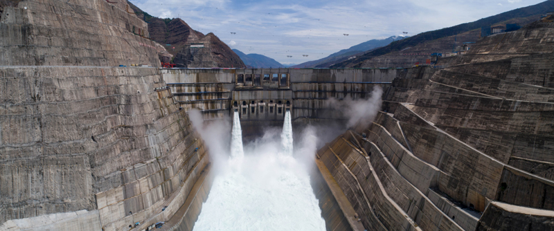 俯瞰白鹤滩水电站(无人机照片,6月27日摄)。