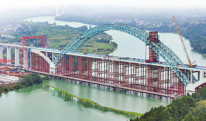 创新设计,拱桥如巨弓跨沱江 成渝中线高铁沱江特大桥合龙