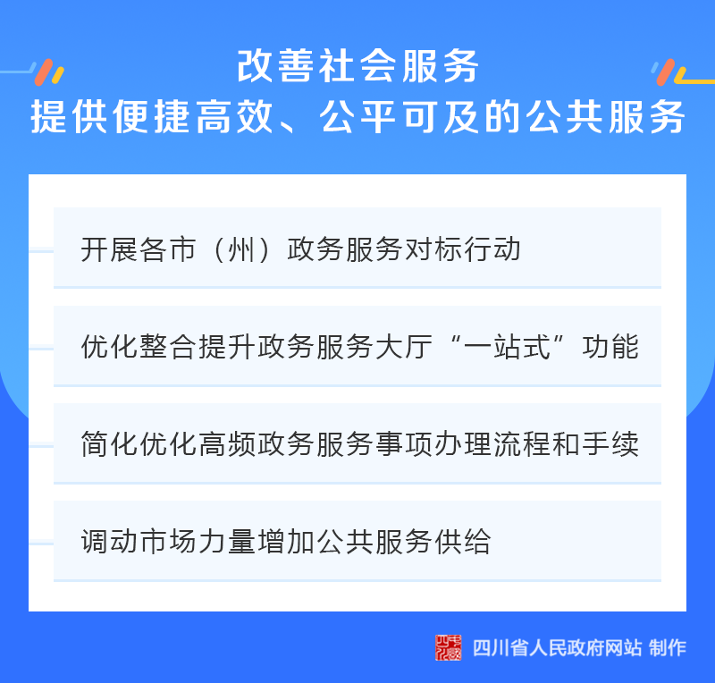 公共服务如何再升级,《工作要点》强调,要开展各市(州)政务服务对标行动,优化整合提升政务服务大厅“一站式”功能,简化优化高频政务服务事项办理流程和手续,调动市场力量增加公共服务供给。