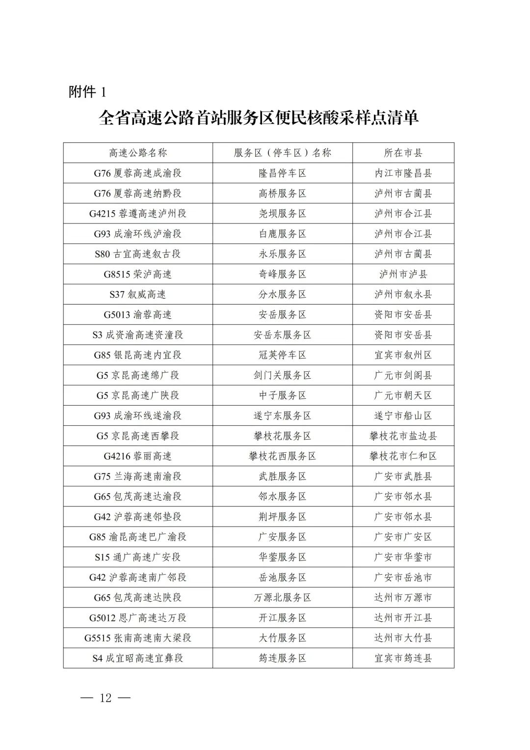 在25个入川高速公路的第一个服务区,均设置了便民核酸采样点,省外来车司乘人员可在这些点位免费做核酸,后续在驶离高速公路出站口时,不再重复检测。