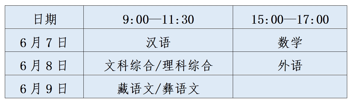 (3)二类模式的藏语文、彝语文考试时间安排在6月9日9:00—11:00。