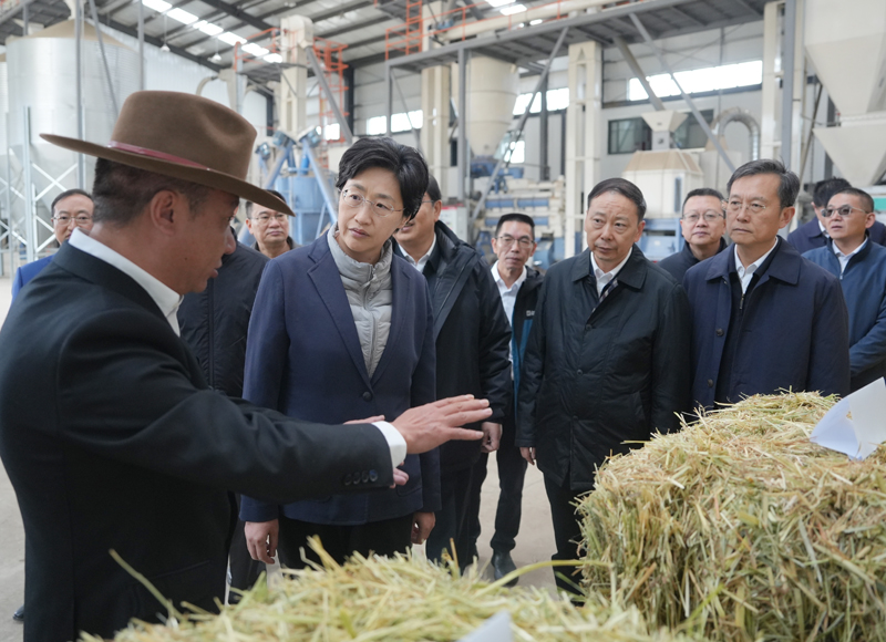Shi Xiaolin, Deputy Secretary of the CPC Sichuan Provincial Committee and Governor of the People's Government of Sichuan Province, inspects the integrated development of the forage grass industry chain, encompassing production, supply, and marketing, at the Manigange Town Modern Forage Industrial Park in Dege County.