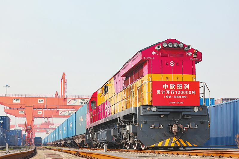 On November 28, a China-Europe Railway Express loaded with 55 containers departed from the Chengdu International Railway Port. This train marks the 120,000th cumulative trip of the China-Europe Railway Express. To date, the total value of goods transported by the China-Europe Railway Express has exceeded 490 billion U.S. dollars.