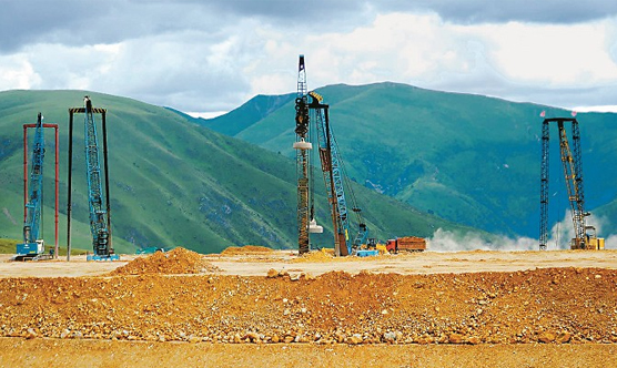 海拔高度4061米的甘孜县格萨尔机场工地上 施工队加紧建设
