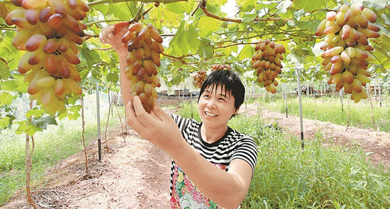 龙马潭区金龙镇有机葡萄园的果农正在为游客采摘葡萄。 (赵飞 摄)