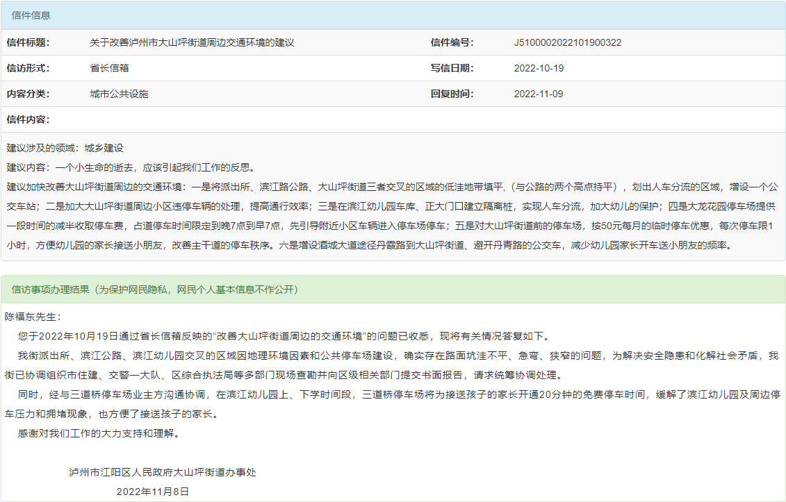 关于改善泸州市大山坪街道周边交通环境的建议