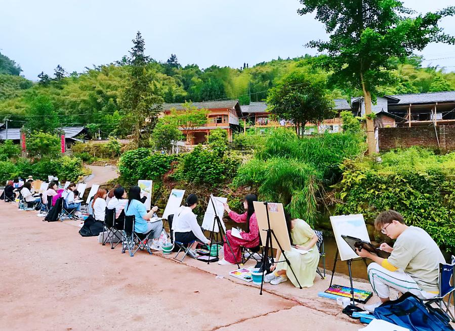 以前的宝田村只有高叠洞一个景区,由于地理位置的原因人流量稀少,旅游业难以发展。“解放模式”推广运行以来,宝田村的水环境质量得到明显改善,人居环境得到实质性提升,宝田村充分挖掘河湖资源,将绿色青山转变为金山银山。一是打造海子山康养项目,宝田村的游客流量不断增加,2023年以来15家农家乐接待游客10000多人次,比2022年增收约40万元,带动宝田村群众依靠售卖竹笋、老川茶、老腊肉等农家特色产品人均增收约200余元。二是与雅安外国语实验小学、四川文化产业学院学校签订了教育实践基地的协议,每年约2000名学生到宝田村开展为期7天的研学与写生活动,通过提供服务工作、售卖农家土特产为宝田村群众带来约60万元的年创收,为村集体经济增收约5万元。