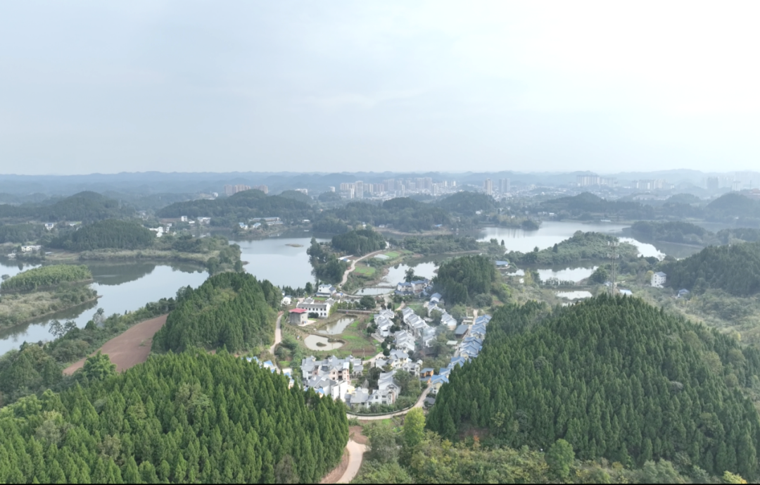 遂宁市蓬溪县赤城镇周家店村沿芝溪河流域的一处河道型水库赤城湖而建。赤城湖水库气候温和、降雨充沛,作为蓬溪一级水源保护地,是全县人民的母亲河,水质长期保持良好。