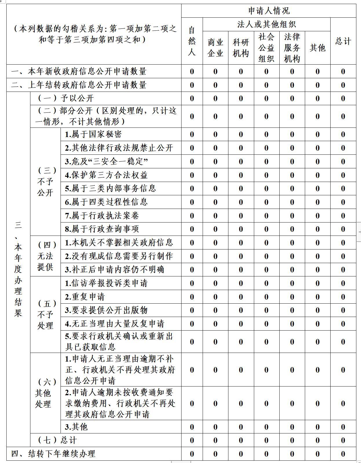 根据《中华人民共和国政府信息公开条例》《中华人民共和国政府信息公开工作年度报告格式》等规定,编制本报告。报告内容包括:总体情况,主动公开政府信息情况,收到和处理政府信息公开申请情况,政府信息公开行政复议、行政诉讼情况,存在的主要问题及改进情况。数据统计期限为2023年1月1日至12月31日。