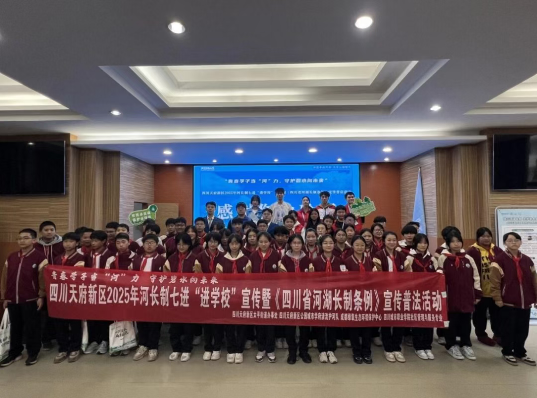 四川天府新区河长制办公室联合太平街道,在太平中学举行了“青春学子当‘河’力,守护碧水向未来”河长制“七进”进学校宣传暨《四川省河湖长制条例》普法活动。通过摆放宣传展板、发放宣传手册、播放河长制宣传片等方式让师生们直观感受到河长制工作带来的河湖治理成果。民间河长代表向全体师生进行河长制相关条例宣讲,并向大家发起护河倡议。