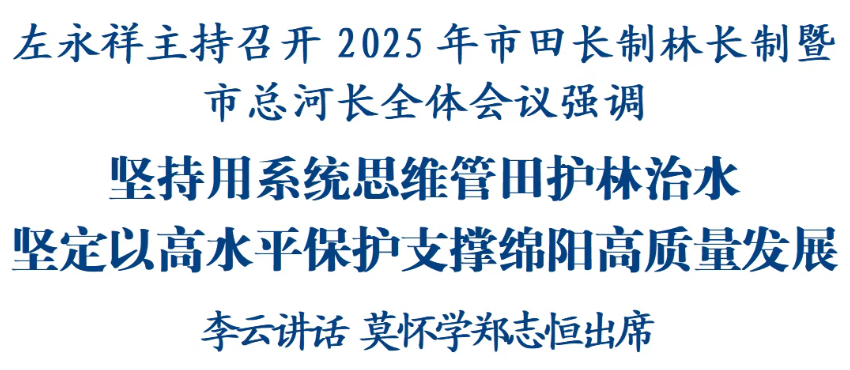 近日,2025年绵阳市田长制林长制暨市总河长全体会议召开,省委常委、市委书记左永祥主持会议并讲话。他强调,要深入学习贯彻习近平生态文明思想和习近平总书记对四川工作系列重要指示精神,全面落实党中央、国务院和省委、省政府决策部署,坚持用系统思维管田、护林、治水,推动田长制、林长制、河湖长制走深走实,坚定以高水平保护支撑绵阳高质量发展。