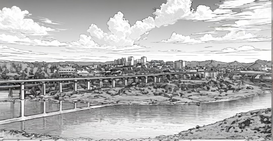 作品简介:这幅画以广安武胜,重庆“渝”地为背景,描绘独特山水与桥梁景观,河流上小船悠悠,两位人物隔空伸手,似传递思念、联结情感。借渝水山水之景,抒发对远方、对故人情愫,展现地域文化与人文情感交融,让观者在山水桥梁间,体会那份跨越空间的牵挂与眷恋 。