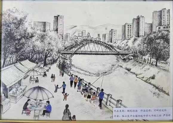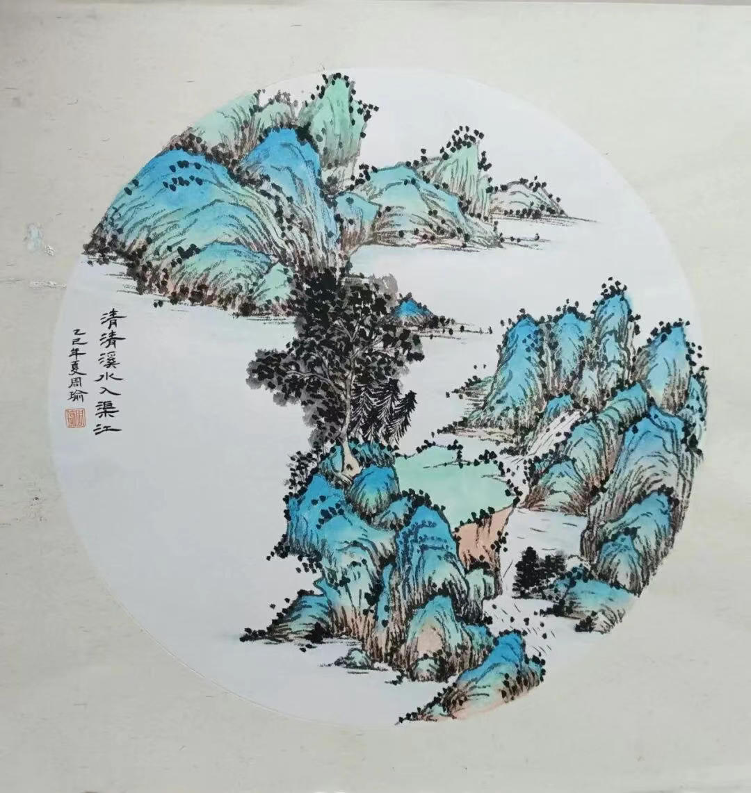 作品简介:此作品生动展现了川渝两地跨界河流的秀美风光。画面中,清澈的河水蜿蜒流淌,两岸绿树成荫,山峦叠翠,生机盎然,呈现出人与自然和谐共生的美好景象。作品通过细腻的笔触和丰富的色彩,表达了对生态环境保护的重视和对未来美好生活的向往,更是对川渝人民携手守护绿水青山的真实写照,传递出浓厚的人文情怀和生态理念。