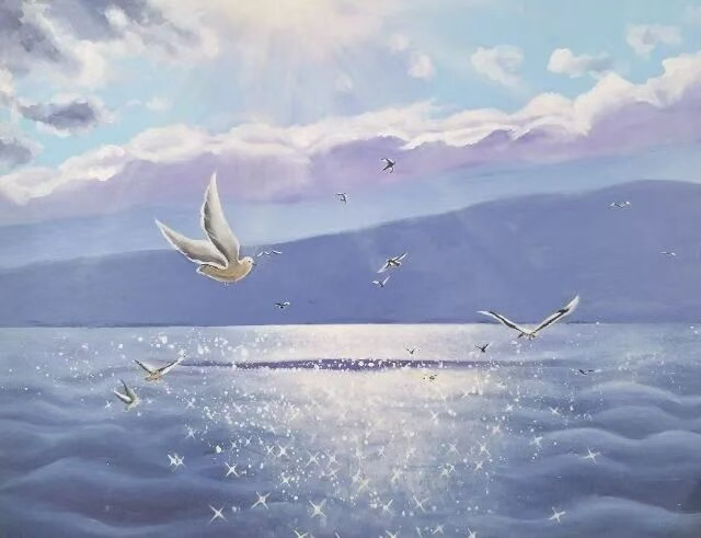 作品简介:描绘了古宇湖群山如黛,云雾缭绕,湖面波光潋滟,与山色交融成趣,水鸟翩跹掠过,或轻点涟漪,或悠然栖息,尽显生态之美,勾勒出一幅人与自然和谐共生的诗意画卷。