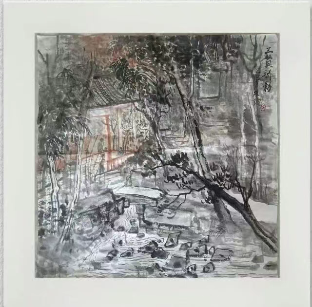 作品简介:作品规格:18.5cm*25cm喜爱家乡恬淡素雅的风景,为体现这样的氛围,这幅画中山石施以单纯的墨色,树木也用极淡的褐色点染,只对穿桥而过的溪流添加绿色,给观画者带来一丝清凉与宁静。