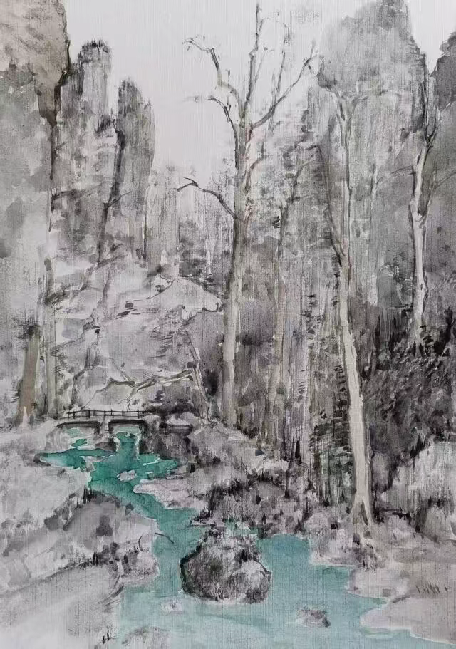 作品简介:真实地展现川渝库区山水的神韵,捕捉稍纵即逝的光影变化和自然气息。我尝试用不同的笔墨技巧和色彩搭配,让每一幅品都能现出库区山水的独特韵味。将传统与现代相结合,通过疏密、虚实、开合等对比关系,营造富有张力和意境的艺术效果。在对川渝两地携手推进跨界河流联防联控联治、共同筑牢长江上游生态屏障的成果展示的同时,唤起人们对自然环境的保护意识,珍惜和爱护我们的家园。