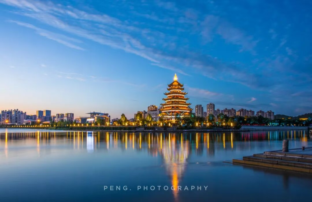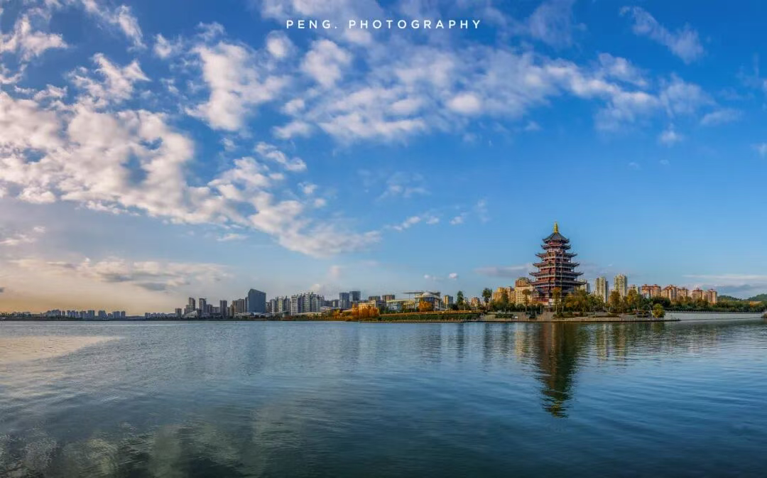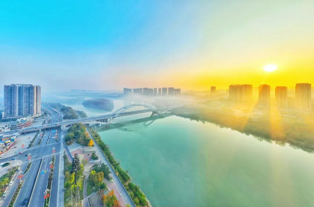 作品简介:本作品以流经资阳雁江区的沱江河为核心,通过晨曦时分的日出、雾等自然光影与人文景观的和谐交融,展现川渝河长制实施下的生态治理成果。清澈的绿色河水、横跨两岸的桥梁、错落有致的城市建筑,以及晨雾中冉冉升起的朝阳,共同勾勒出一幅“水清、岸绿、城美”的生态画卷。