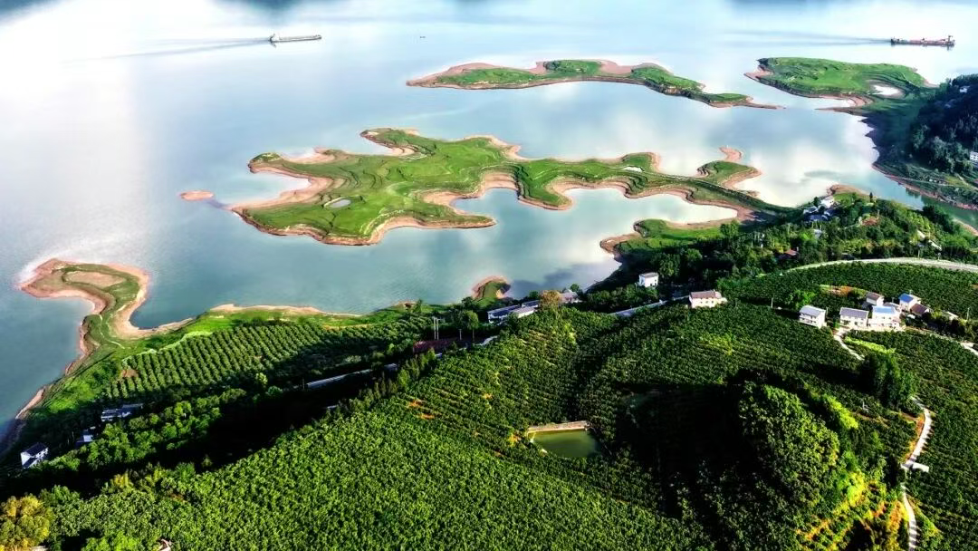 作品简介:2025年4月,长江重庆忠县涂井乡友谊村段呈现出一幅绝美的生态画卷。忠县是长江上游重要生态屏障组成部分,长江横贯县境88公里。近年来,忠县全面落实河长制,着力实施山水林田湖草生态保护和修复。现在,长江忠县两岸荒山变“金山”,消落带“秃斑”变绿洲,大片湿地和柑橘林在涵养水源、绿化库岸、造福百姓等方面发挥重要作用。
