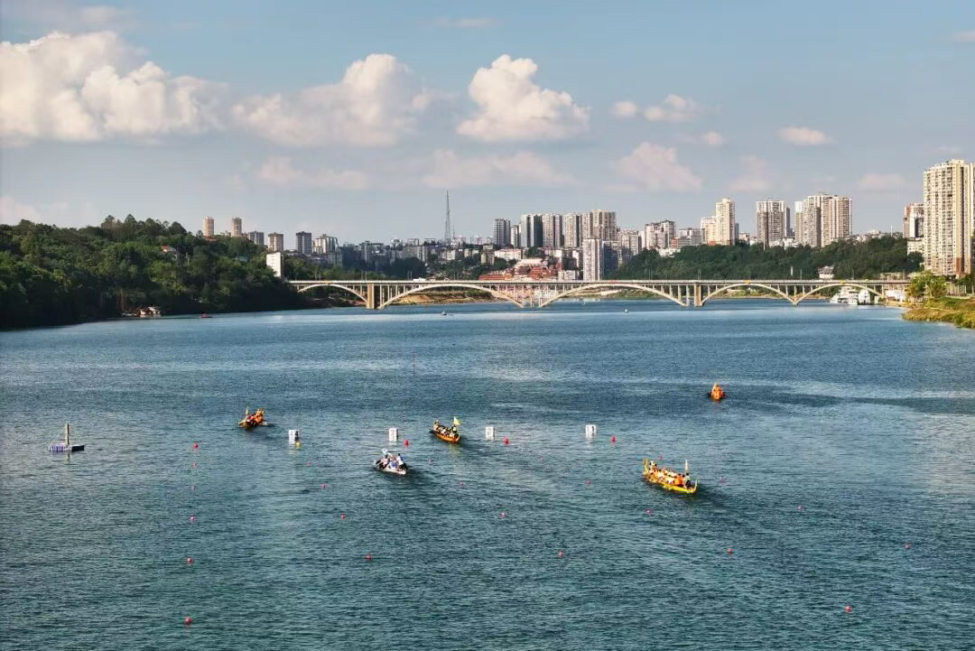 作品简介:2025年5月29日,嘉陵江广安市武胜段,5支龙舟在江面竞渡。近年来,武胜县全面落实河(湖)长制,推动长江最大支流嘉陵江生态环境保护,使嘉陵江出川断面稳定保持II类水质。