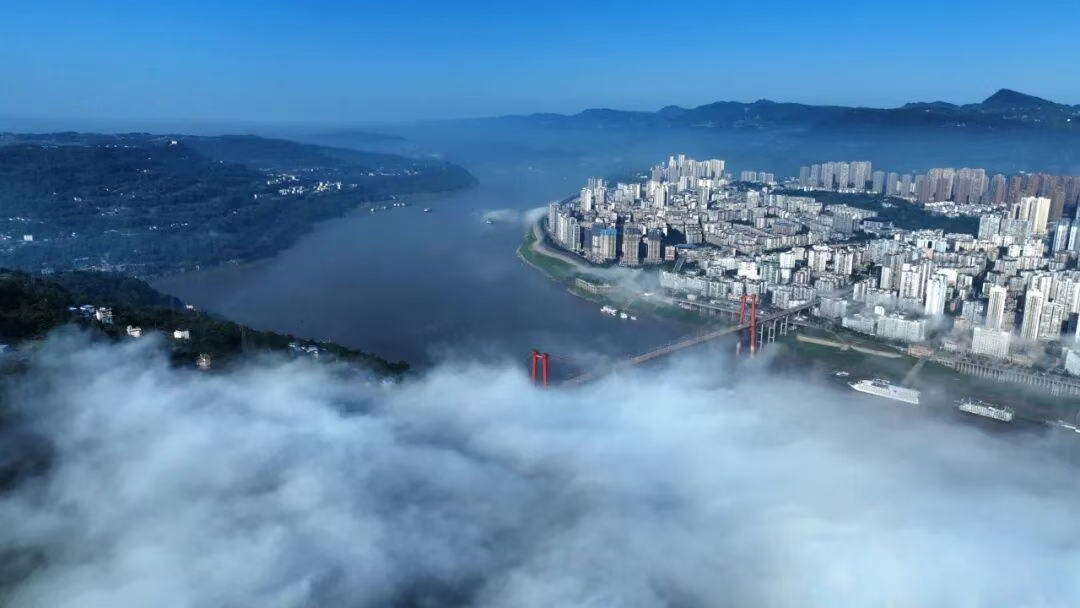 作品简介:初见忠县,便被这云海中的城与桥震撼。红桥跨江,城隐雾里,山水环抱,原来真有城市,能美成一幅流动的山水长卷 。