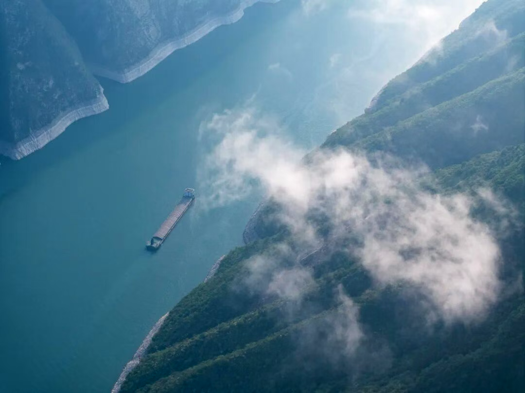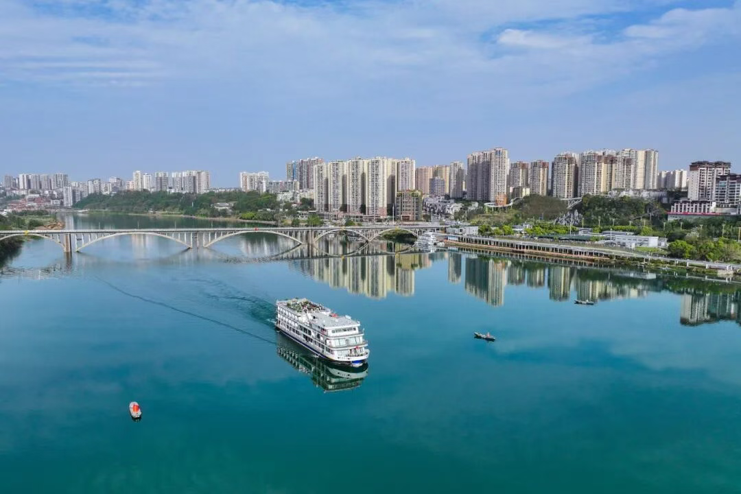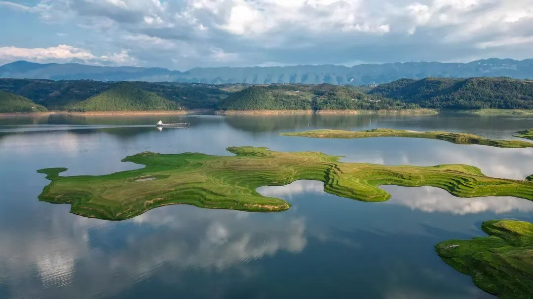 作品简介:2025年4月17日,一艘游轮行驶在广安市武胜县嘉陵江龙女湖上,宛如天空之镜。近年来,武胜县全面落实河(湖)长制,推动长江最大支流嘉陵江生态环境保护,使嘉陵江出川断面稳定保持II类水质。