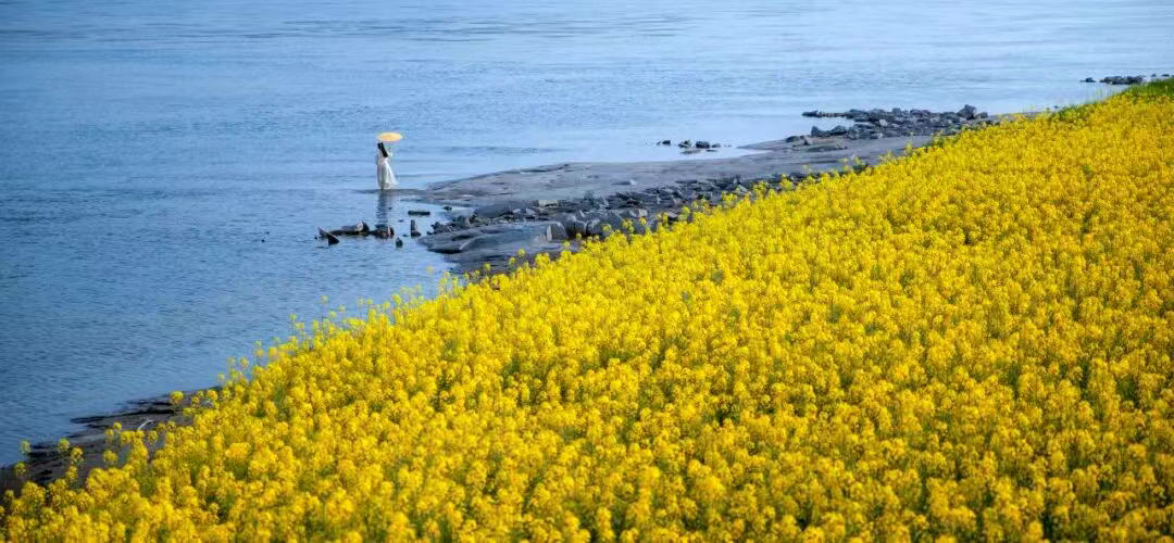 作品简介:春风掠过江畔,金黄的油菜花如潮水般翻涌,与粼粼波光相映成趣。画面中的女子沐光而立,发丝随风轻扬,灵动的姿态与自然景致相融相生。风裹挟着花香拂过发梢,勾勒出温柔的弧度,定格这一瞬人与自然的浪漫对话,将春日的缱绻诗意与蓬勃生机凝结成永恒的美好。