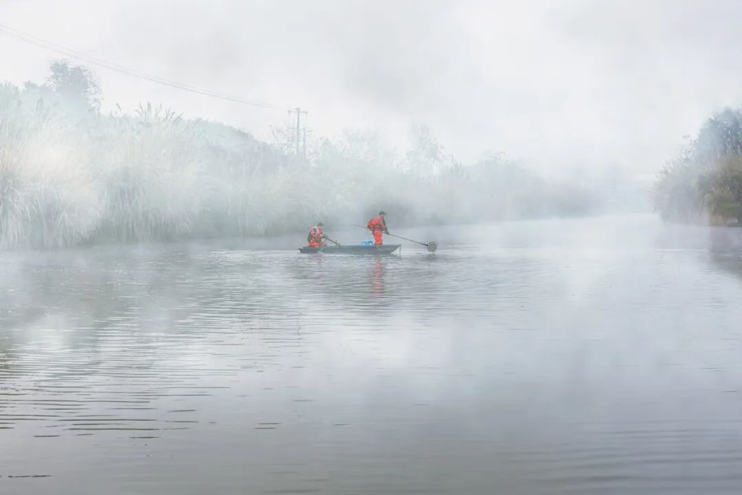作品简介:晨雾缭绕,河道清洁工摇着小船正在岳阳河上打捞漂浮物,美化我们的母亲河。