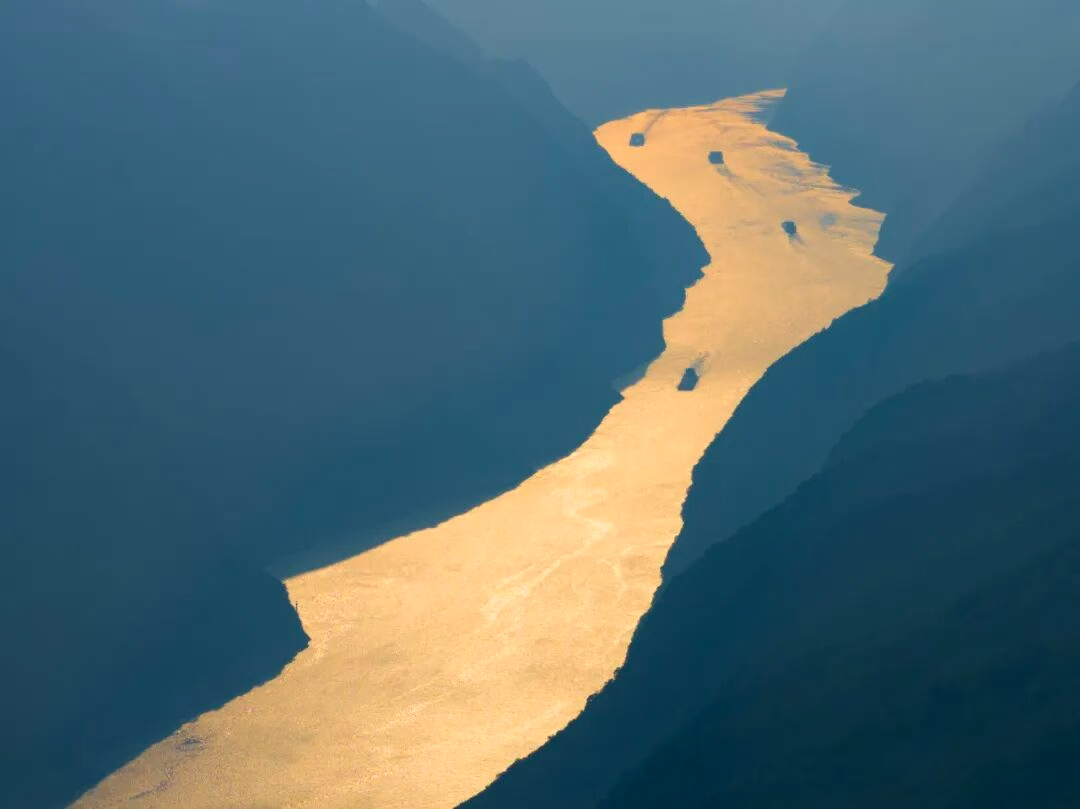 作品简介:这张作品以层叠的山为对比,展示了长江被日出染成金色的瑰丽之美。