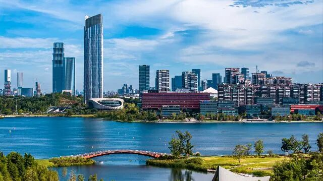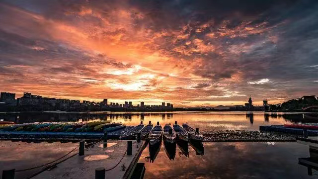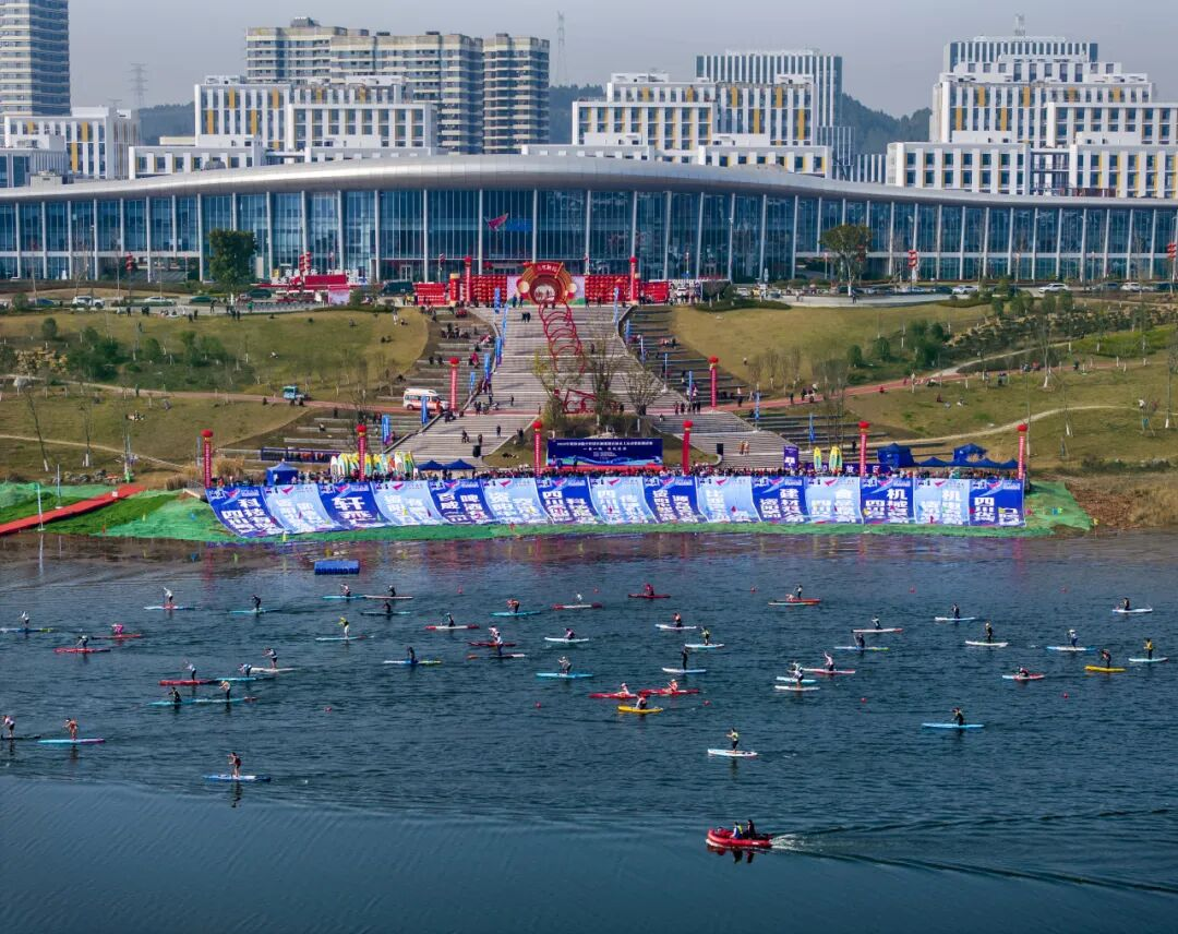作品简介:雁溪湖首届水上运动桨板邀请赛正在举行。初春时节,蓝天白云,湖水湛蓝清澈。众多色彩斑斓的浆板船,在宽阔的湖面上竞相前行,扬起道道波纹,与孵化园现代建筑群相映成趣,展现出水上运动的蓬勃活力与雁溪湖迷人的魅力!