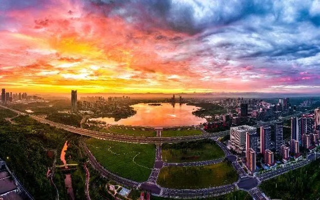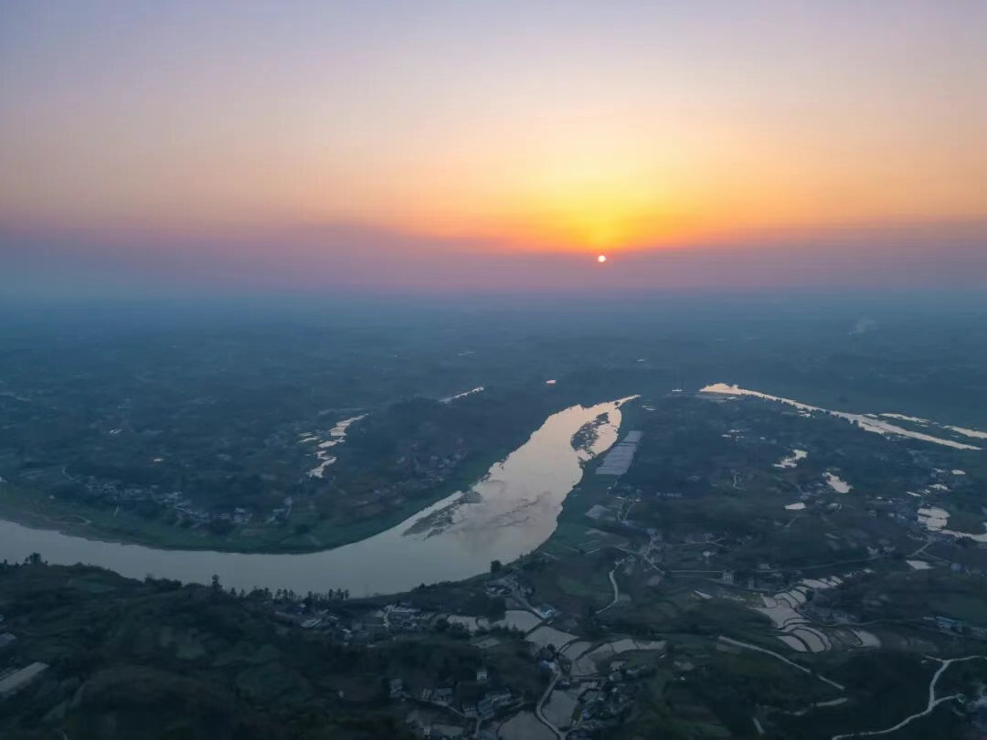作品简介:作品拍摄于四川遂宁涪江滨水带,以航拍视角捕捉破晓时分、傍晚、夜晚的城市脉动。涪江如缎带蜿蜒,将现代楼宇与生态湿地温柔环抱,远处灵仙阁塔影若隐若现。部分画面以冷暖交融的霞光为天然滤镜,江面倒映着跨江大桥的几何线条,展现“西部水都”特有的诗意栖居。通过长曝光技法凝固流水动态,隐喻这座千年江城在时代发展中的从容气度,传递“山水人城”和谐共生的可持续发展理念。