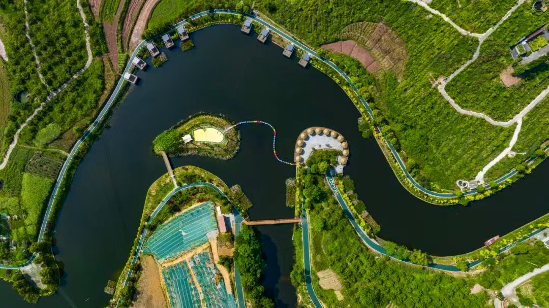 作品简介:图片中描绘出江水环绕岛屿的优美画面,既包含自然之美也暗含治理成效。