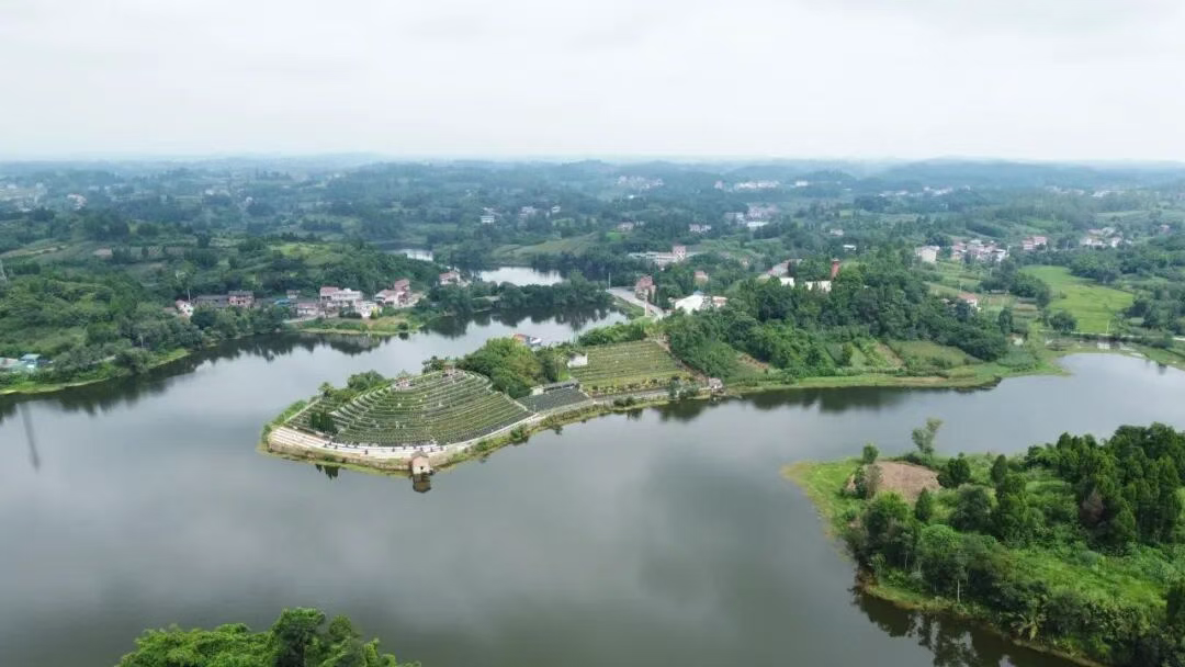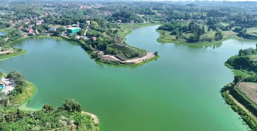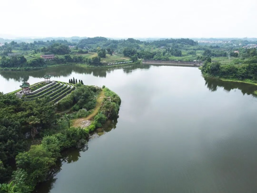 作品简介:光荣水库,坐落于内江经开区黄石河的上游,发挥着灌溉和防洪的多重功能,滋养着周边的土地与人民。水库大片水域澄澈如镜,映着天光云影与岸边翠意。湖心小岛别致,似大地镌刻的诗行。四周绿野连绵,村舍散落,仿若绿毯上的点缀。自然景观交织,勾勒出一幅宁静悠然、生机盎然的乡村水库风光图,尽显生态之美与田园韵味。