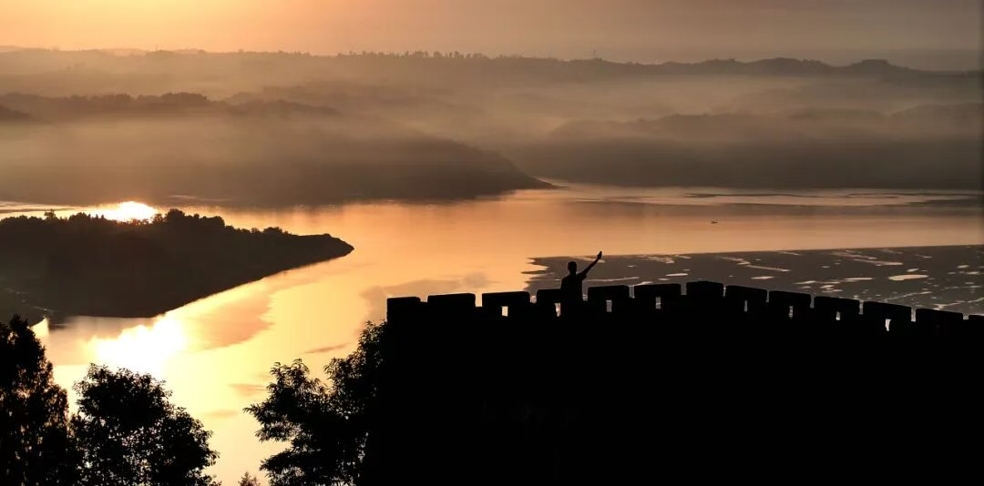 作品简介:6月16日清晨6点21分,金色的晨光洒在长江重庆忠县独珠半岛流域的江面,一名晨跑者站在独珠江村的烽火台上观赏江湾大美风光。