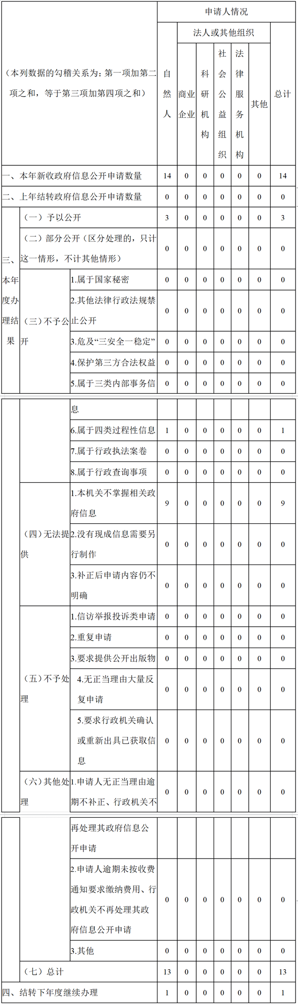 三、收到和处理政府信息公开申请情况