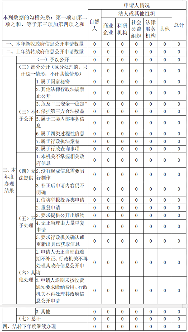 三、收到和处理政府信息公开申请情况