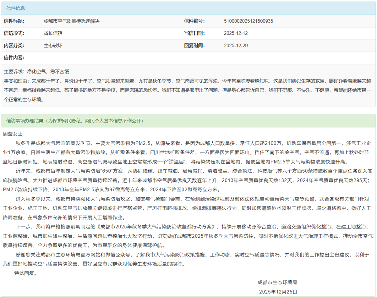 成都市空气质量待急速解决