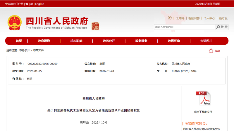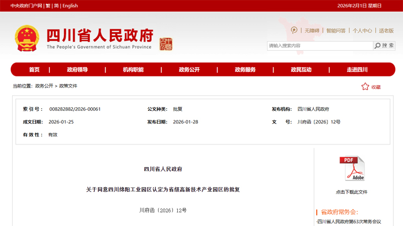 政策回顾:四川省人民政府2026年1月出台重要政策